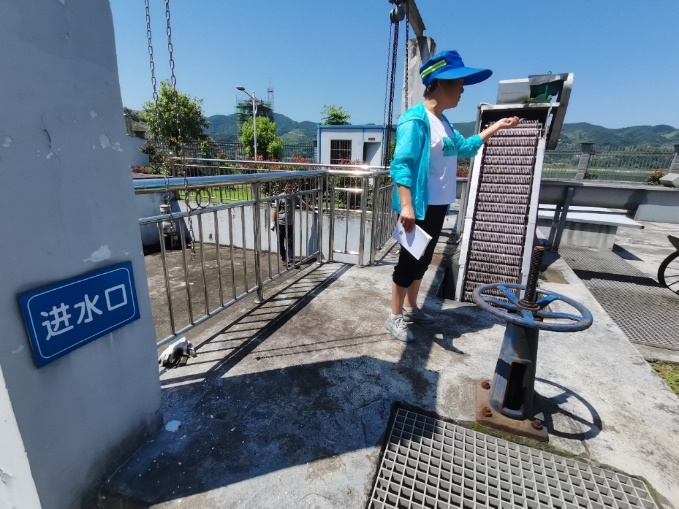 竹山县上庸镇污水处理厂工作人员为队员讲解污水处理流程