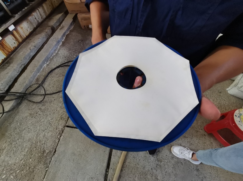 竹山县城关镇垃圾填埋场工作人员展示渗滤液处理所用的膜材料