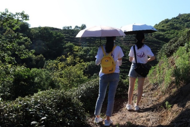 团队成员参观魏沟村种植大户的茶园