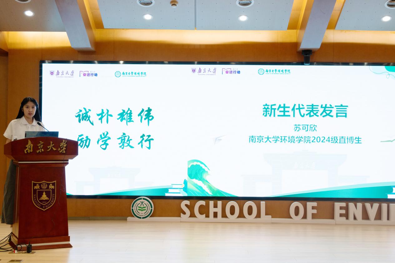新生代表、2024级直博生苏可欣发言,表示将牢记"诚朴雄伟,励学敦行"的校训,做勇于担当、学以报国、砥砺奋进的南大人,以科技报国的决心、自立自强的信心,在奋进新征程、建功新时代中展现青春担当!