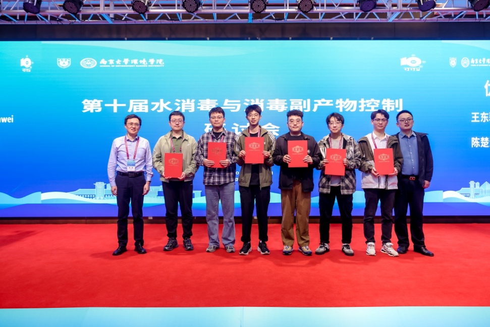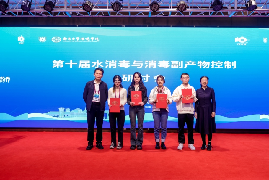 闭幕式由香港科技大学张相如教授和南京大学鲜啟鸣教授主持。经过专家打分和参会人员投票,本次大会共选出6个研究生优秀报告和4个优秀墙报。同济大学楚文海教授、清华大学陈超副研究员、南京大学张淑娟教授和南京大学周庆教授共同为研究生优秀报告和优秀墙报进行颁奖。清华大学陈超副研究员介绍了消毒副产物领域最新专著"Disinfection byproducts in water"的编写历程与主要内容。最后,湖南大学周石庆教授介绍了下一届水消毒与消毒副产物控制研讨会的筹备情况。