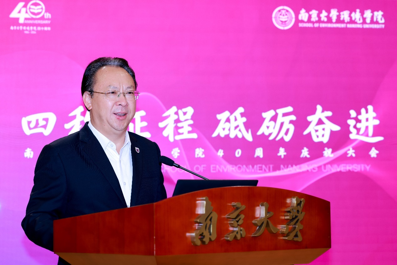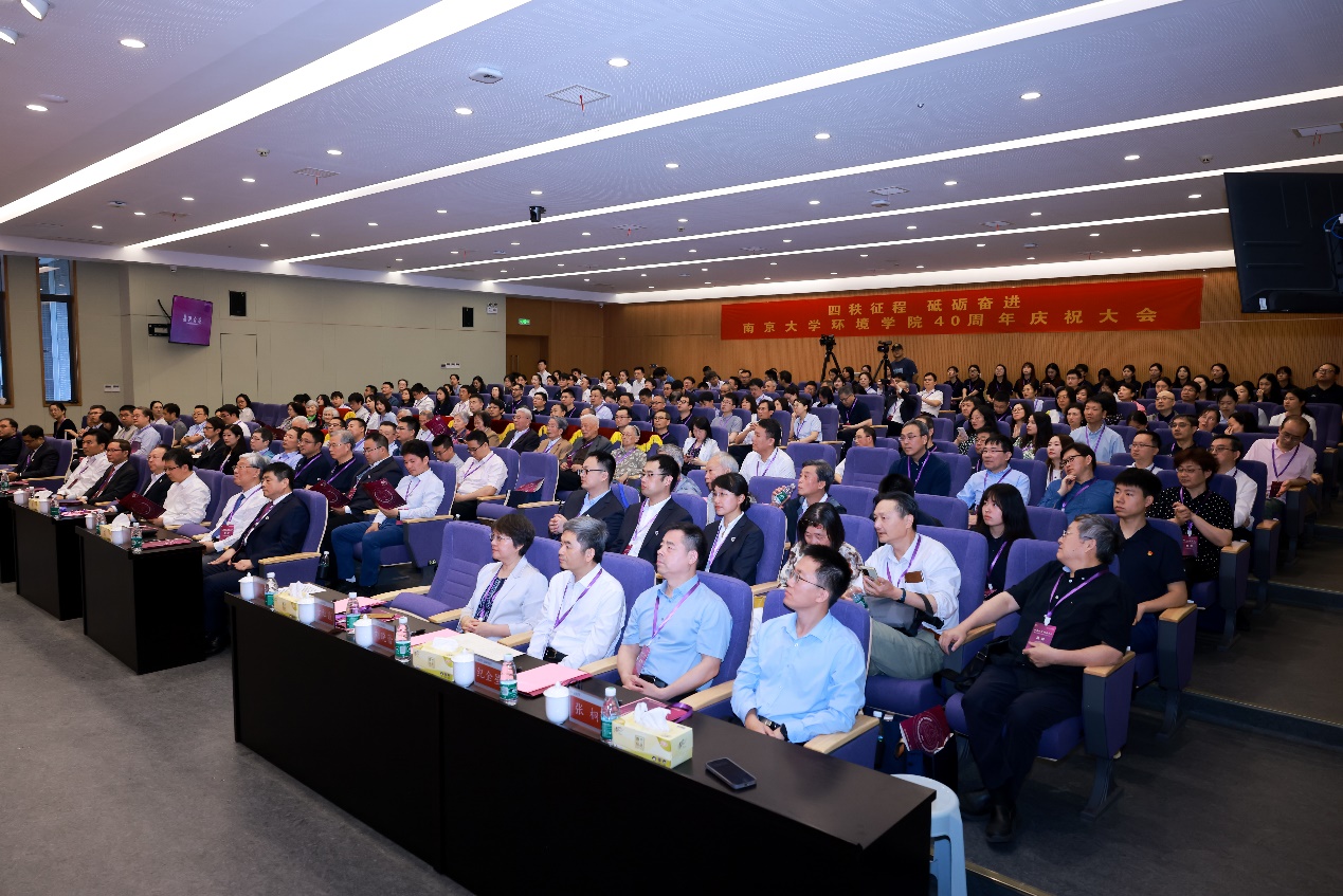 5月19日上午,"四秩征程 砥砺奋进——皇冠体育投注-皇冠体育盘口 40周年庆祝大会"在皇冠体育投注 大楼B111报告厅顺利举行。中国科学院院士、南京大学党委书记谭铁牛,江苏省生态环境厅厅长蒋巍,中国工程院院士、北京师范大学环境与生态前沿交叉研究院院长余刚,江苏省生态环境厅原一级巡视员于红霞,江苏金山环保工程集团董事长、党委书记钱盘生等有关单位领导出席大会。中国工程院院士张全兴,中国工程院院士、南京大学皇冠体育投注 院长任洪强,皇冠体育投注 校友代表和师生代表等200余人参加大会。皇冠体育投注 党委书记刘建萍主持大会。